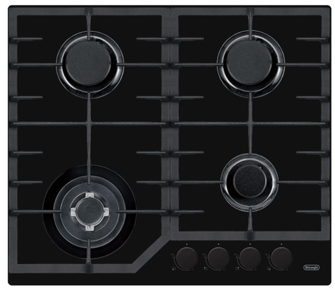 поверхность газовая, 60 см, 4 конфорки, решетки чугунные, черное стекло