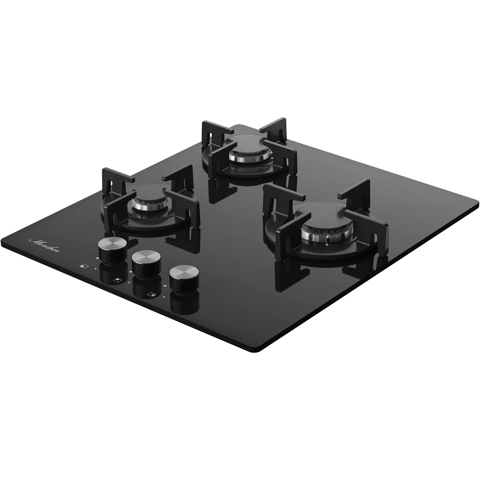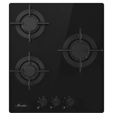 Варочная панель Monsher MGG 44 Noir, черное стекло, 3 газовые конфорки