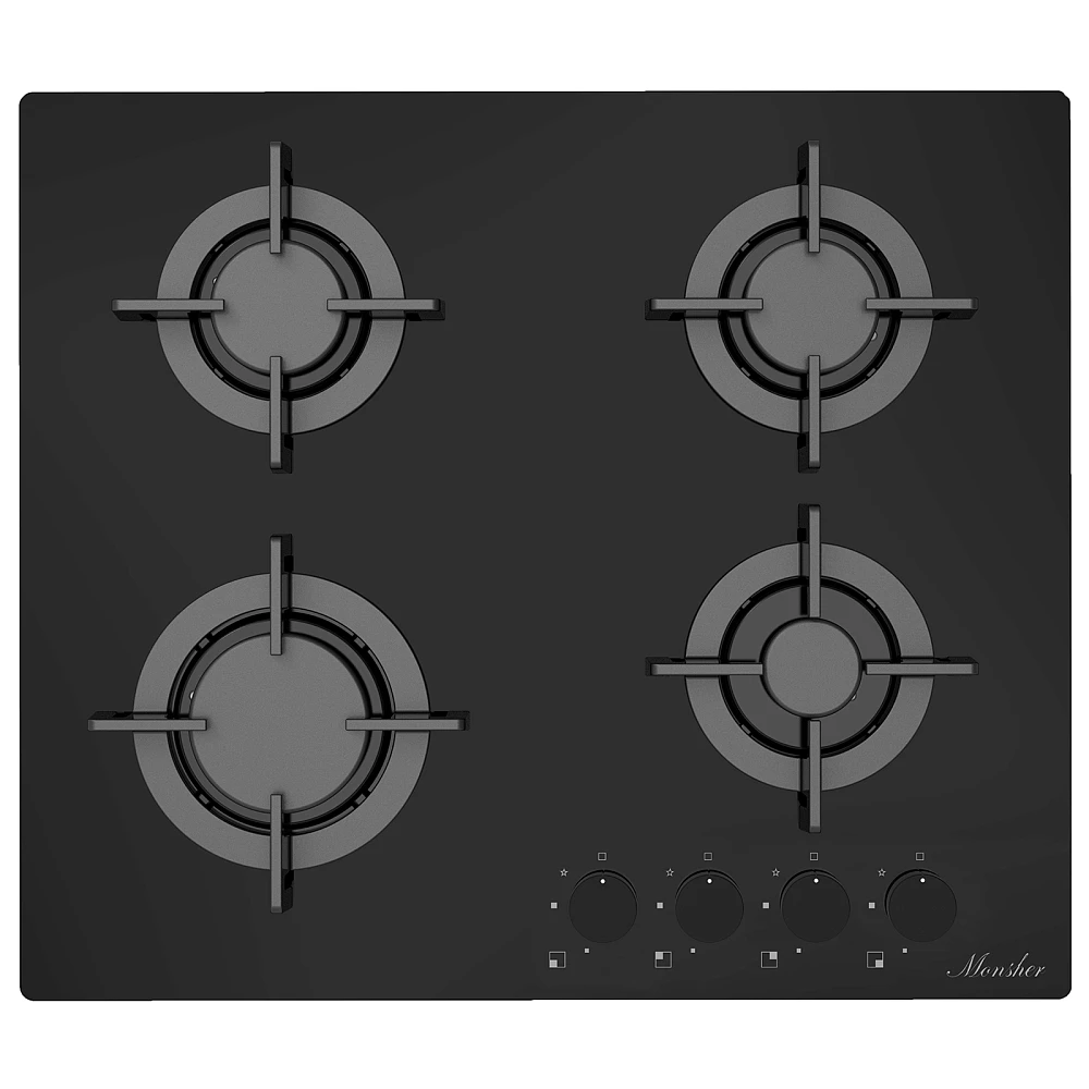 Варочная панель Monsher MGG 64 Noir, 4 конфорки, газовый контроль, черная