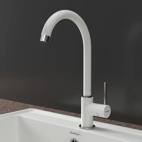Поверхность смесителя окрашена в цвета мраморных моек GranFest.
