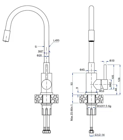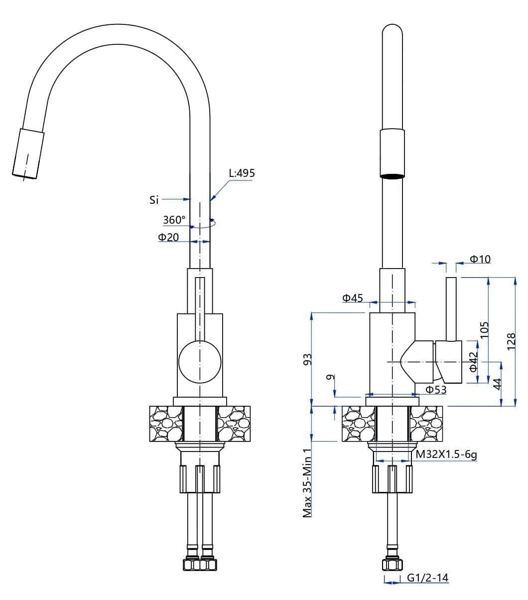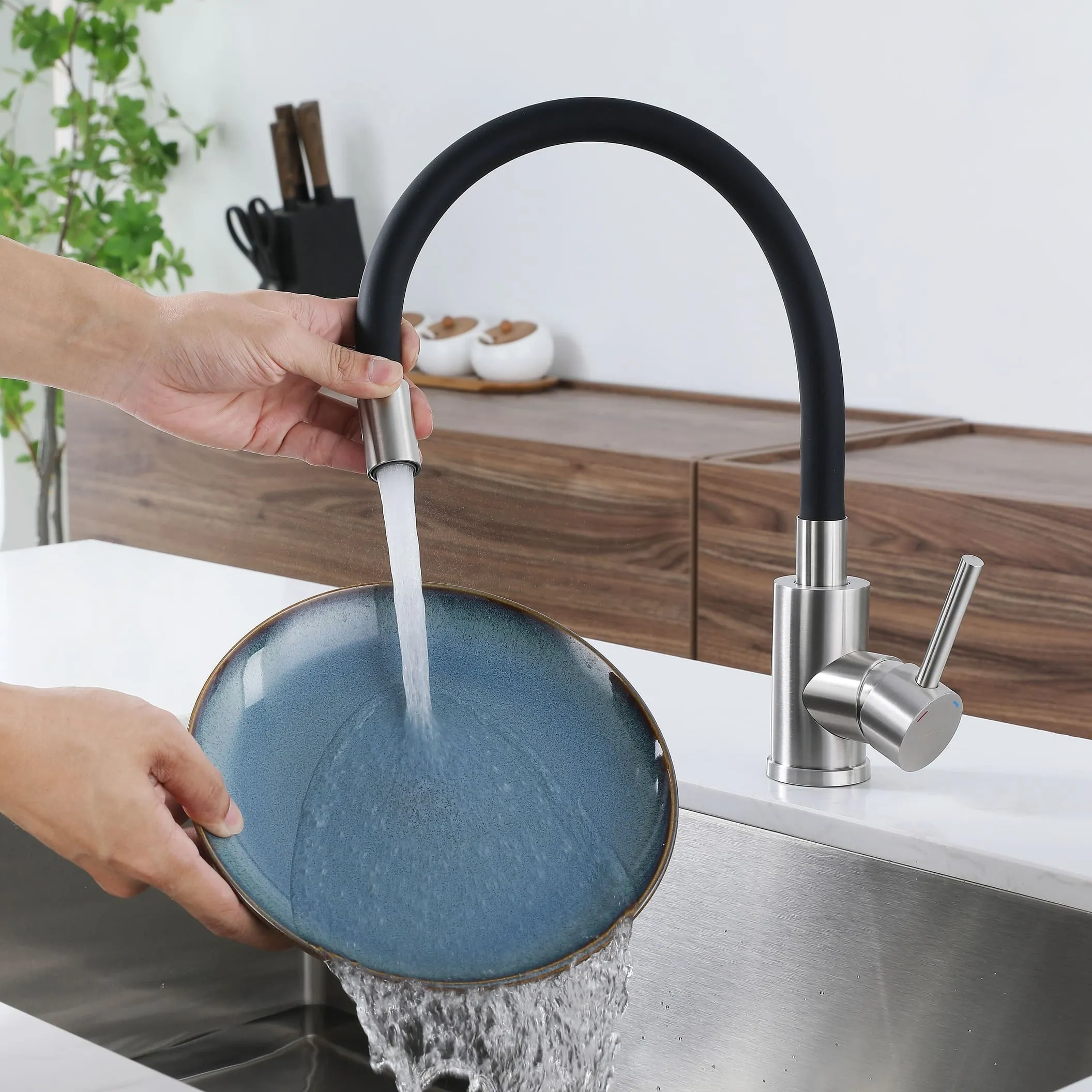 Гибкий излива позволит Вам удобно располагать его во время мойки посуды.
